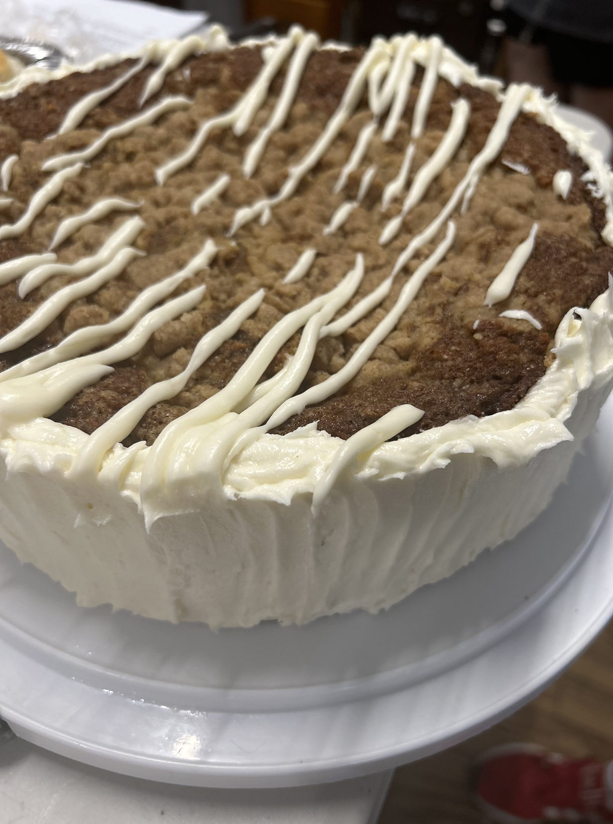 The Carrot Cake you know and love with a cinnamon crunch topping, and of course cream cheese frosting and drizzle.